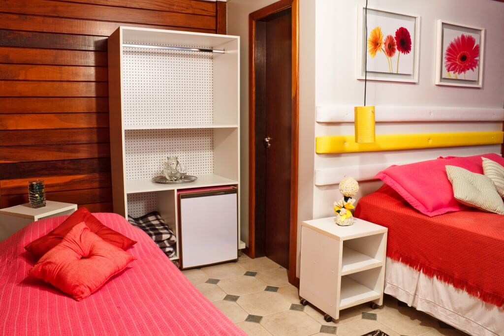 Suíte com ar condicionado, frigobar, TV 32, camas box. Localizado no térreo com acesso externo.